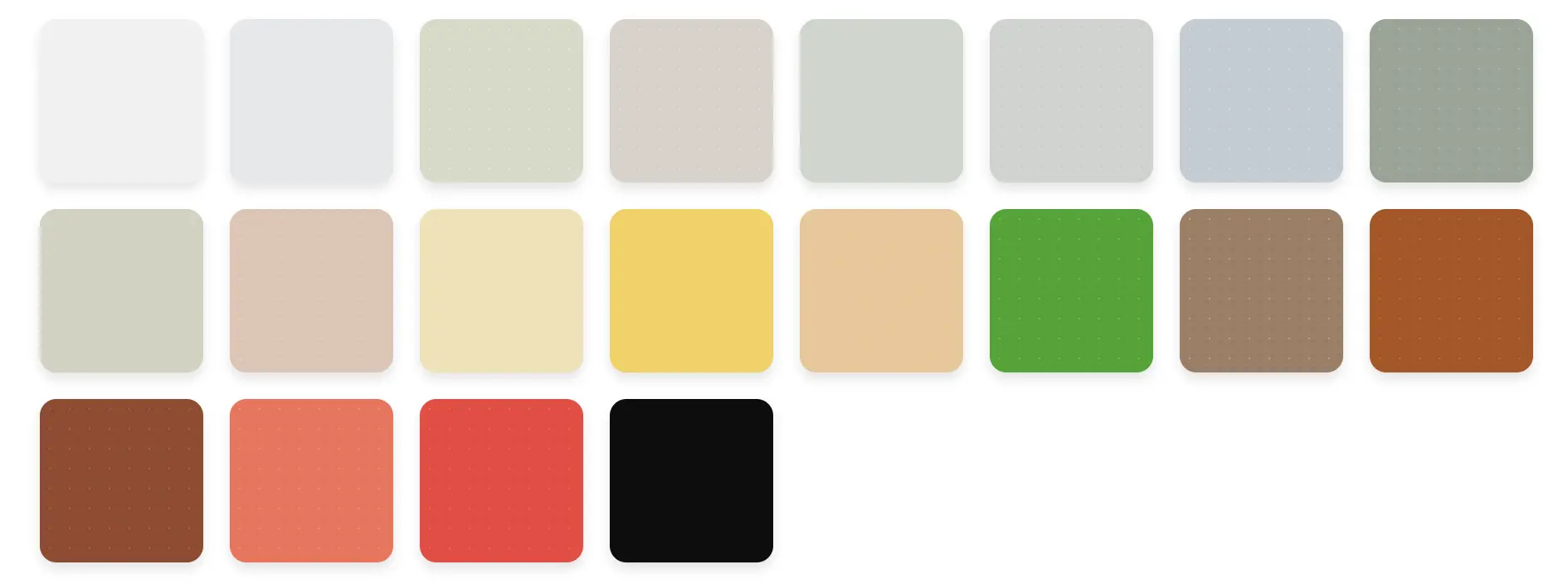 Eine Auswahl beliebter Töne – matt, mineralisch anmutend. Weitere Farbwünsche auf Anfrage.
