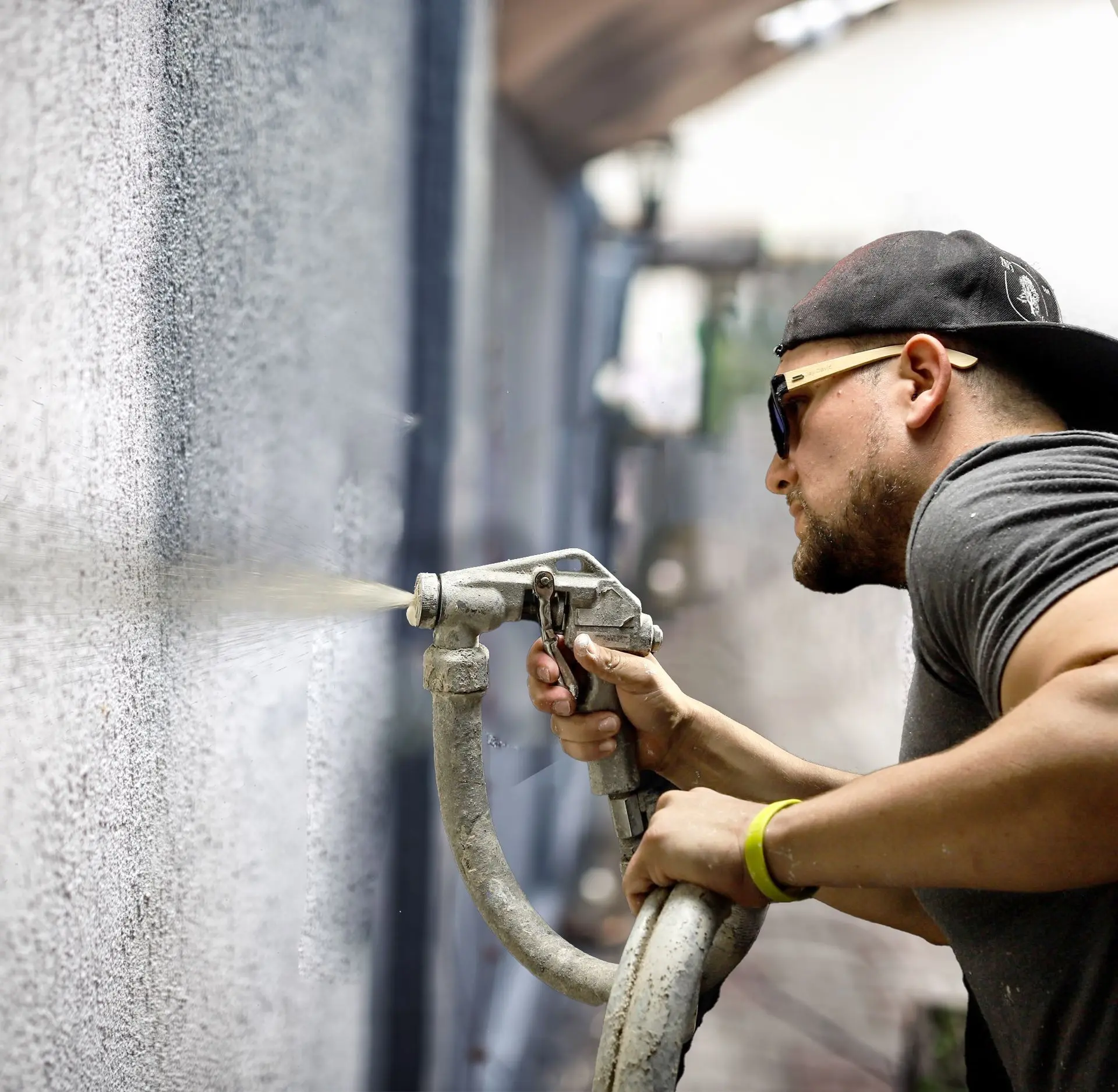 Verwenden Sie eine Spritzpistole und einen Kompressor.
